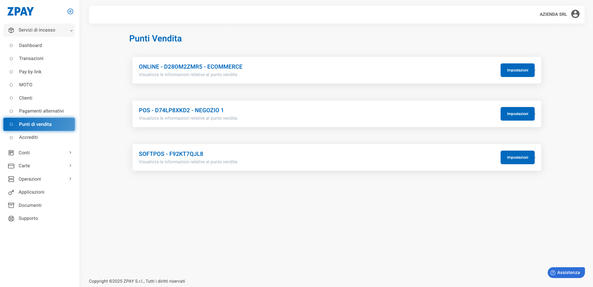 - Nel menu laterale sinistro, vai alla sezione “Servizi di incasso” e seleziona “Punti Vendita”.